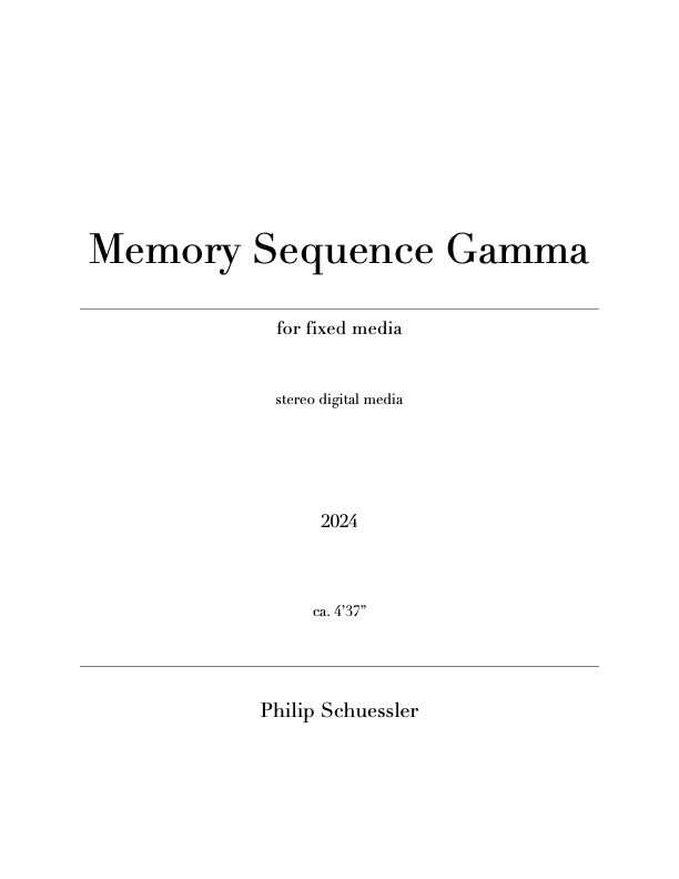 Memory Sequence Gamma was written for an installation project by New Orleans-based visual artist Sally Heller entitled In Mid-Air. The work is also designed to be played as a stand-alone stereo concert work.