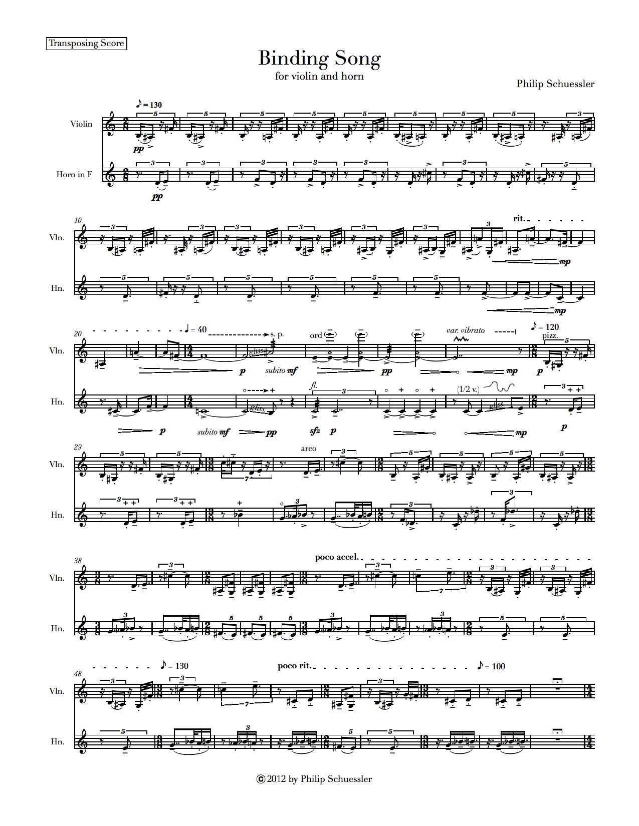 Instrumentation: horn and violin