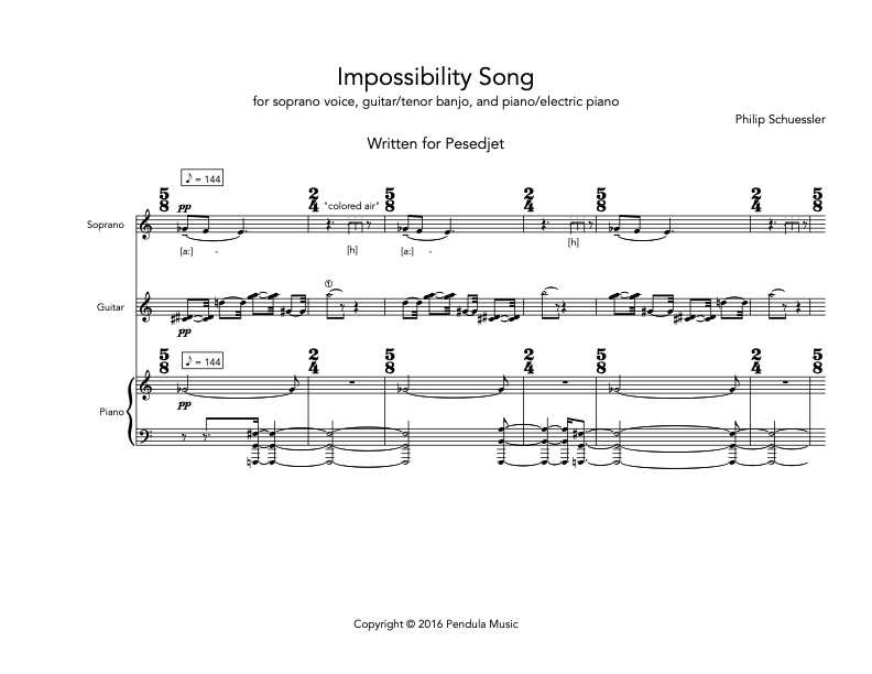 This work, written for Pesedjet, is one of a few works of mine that began with its eventual title first; then came the music – music that, ironically in a sense, contains shaped phonemes instead of words for the vocal part. Considering that the title is a seeming source of inspiration, I have been wondering what is the connection to the actual music — a music of disjointed sonic patterns, fluctuations of individual instrumental colors and tempi, and uncorrelated layers which align in jarring ways. As I was writing the piece, I came across a passage from Ben Marcus’ book The Flame Alphabet that resonated with me and, in a way, seems to have guided me towards some understanding of the title: