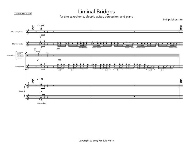 This work invites the listener to a sound world based on resonant metals. The piece uses intricate, filigree patterns and broader masses of color all of which are based spectrally on the sounds of three metal percussion instruments used in the piece.