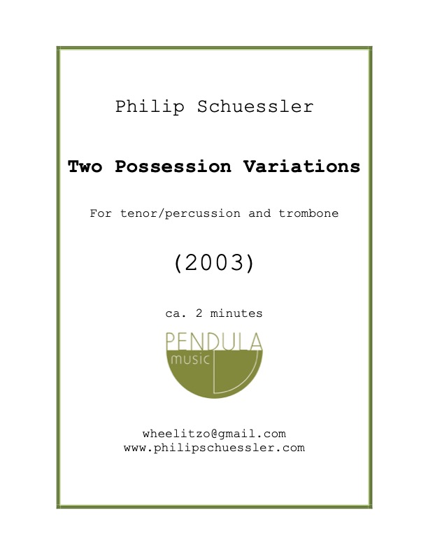 Two Possession Variations is a miniature written for trombonist Ben Lanz and vocalist Lawrence Mesich as part of Lanz’s graduate recital at Stony Brook University. The piece finds humor in deconstructing a line of music from what is often thought of as one of the more poignant songs by the rock band The Doors.